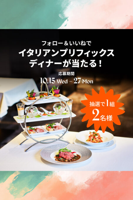 季節の実りがいっぱいの「食欲の秋」。ITALIANITYでは、ホテル インターコンチネンタル 東京ベイのディナーが当たるSNSプレゼントキャンペーンを実施します。ラグジュアリーな「イタリアンダイニング ジリオン」で楽しむ至福の美食、ぜひご応募を!
