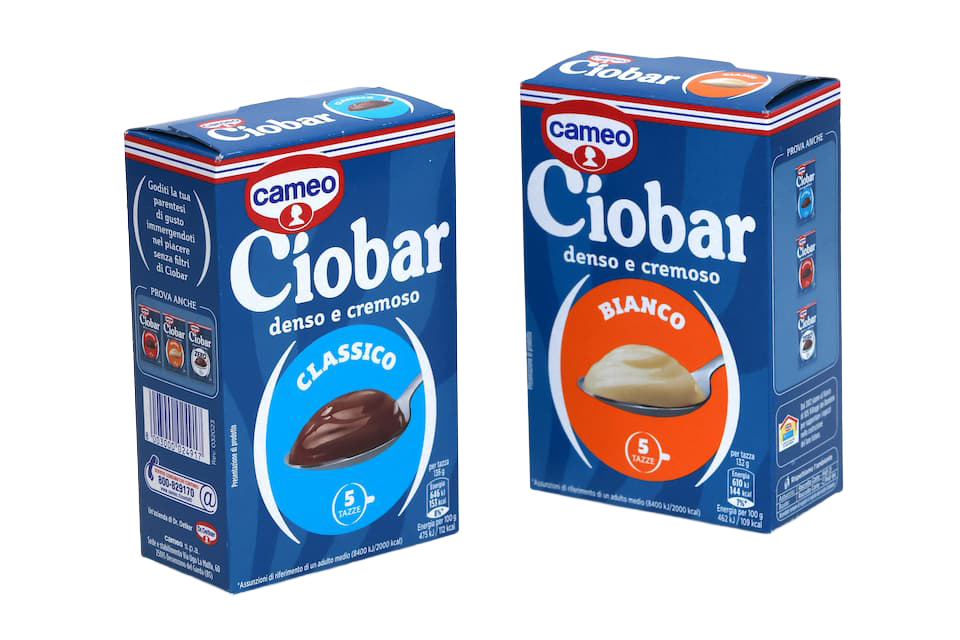 そのチョコラータ・カルダを、家庭でも簡単に再現できる商品があります。名前は「チョバール(Ciobar)」。cioccolata(チョコレート)+ bar(バール) を組み合わせた造語です。家庭用デザートやスイーツミックスなどで知られるイタリアの食品メーカー・カメオ社が1960年代から製造しているロングセラーで、寒い時期における家庭の常備品として親しまれてきました。