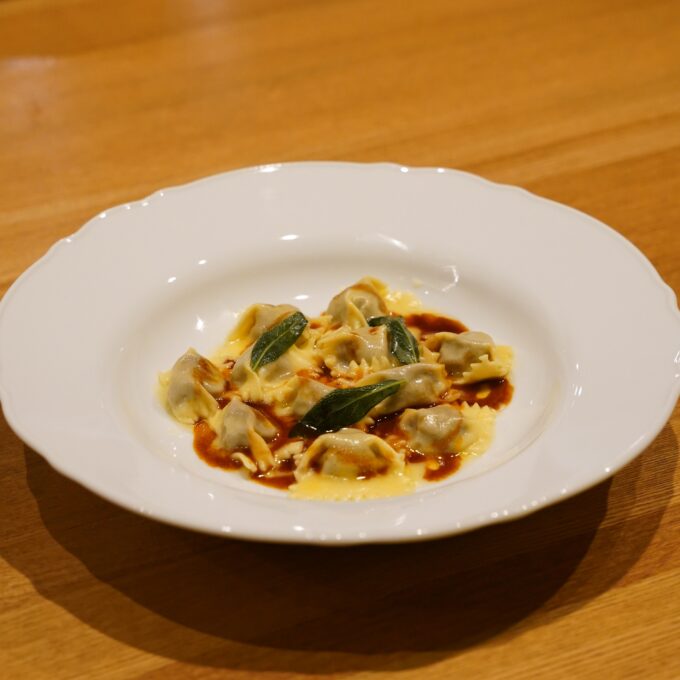 実際に食べてみると、思った以上にあっさりしたバターソースが詰め物パスタの美味しさを引き立てるように寄り添い、飽きることなく、いくらでも食べられる美味しさ。ここでもオリーブオイルではなく、バターが使われているところに、北部のピエモンテらしい味わいを実感しました。